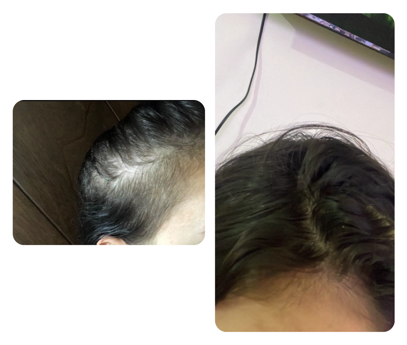 "Hola! te envío mi proceso de 2 años utilizando Alquimia desde que comencé a padecer alopecia 🤍🌟."